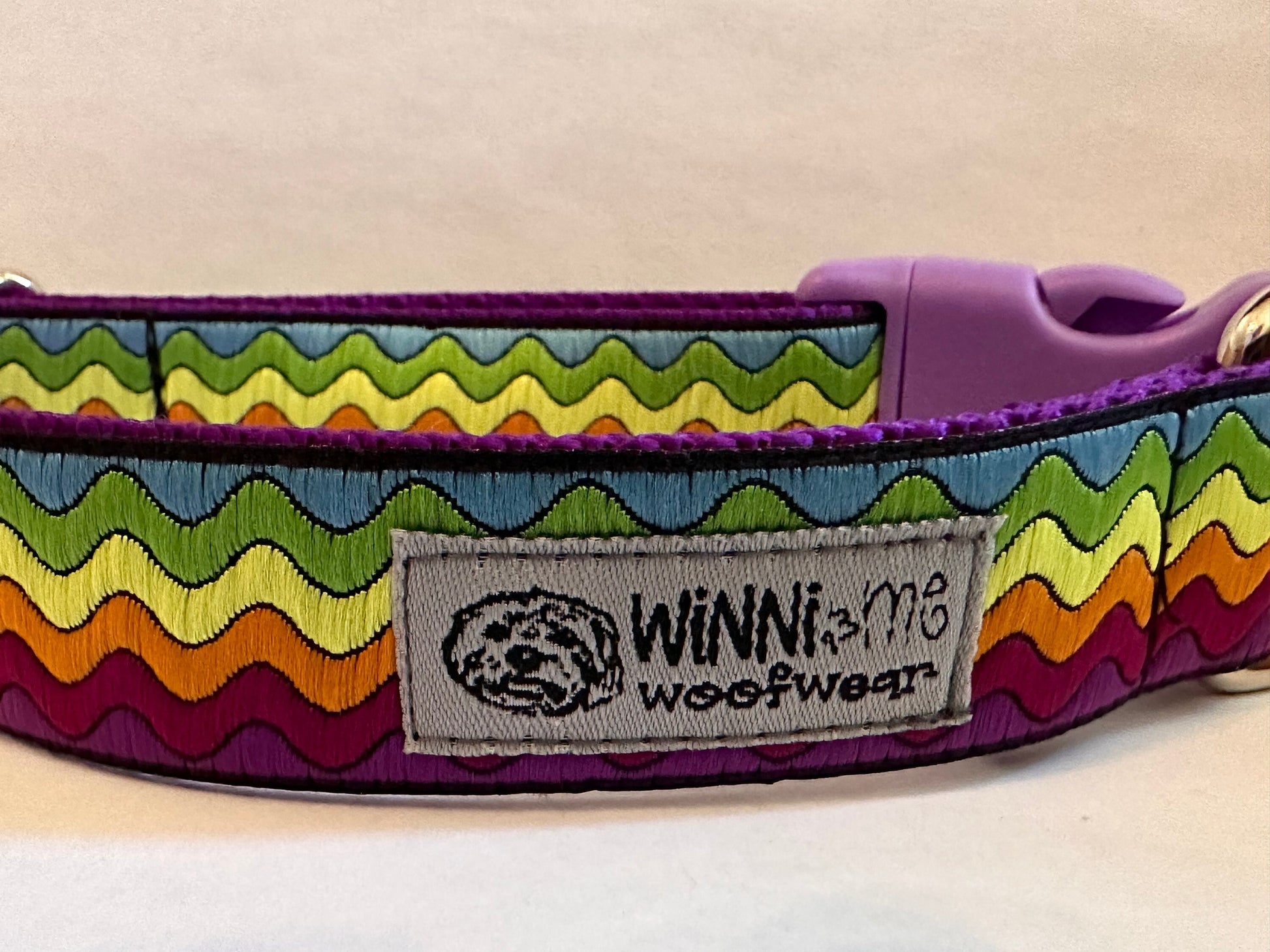 Ride the rainbow with this vibrant dog collar featuring a mesmerizing wave pattern that brings joy to every walk. Bold, flowing colors dance across premium material, creating a modern look that matches your pup's playful personality. Perfect for pet parents who want their furry friend to stand out in style while staying comfortable and secure.
