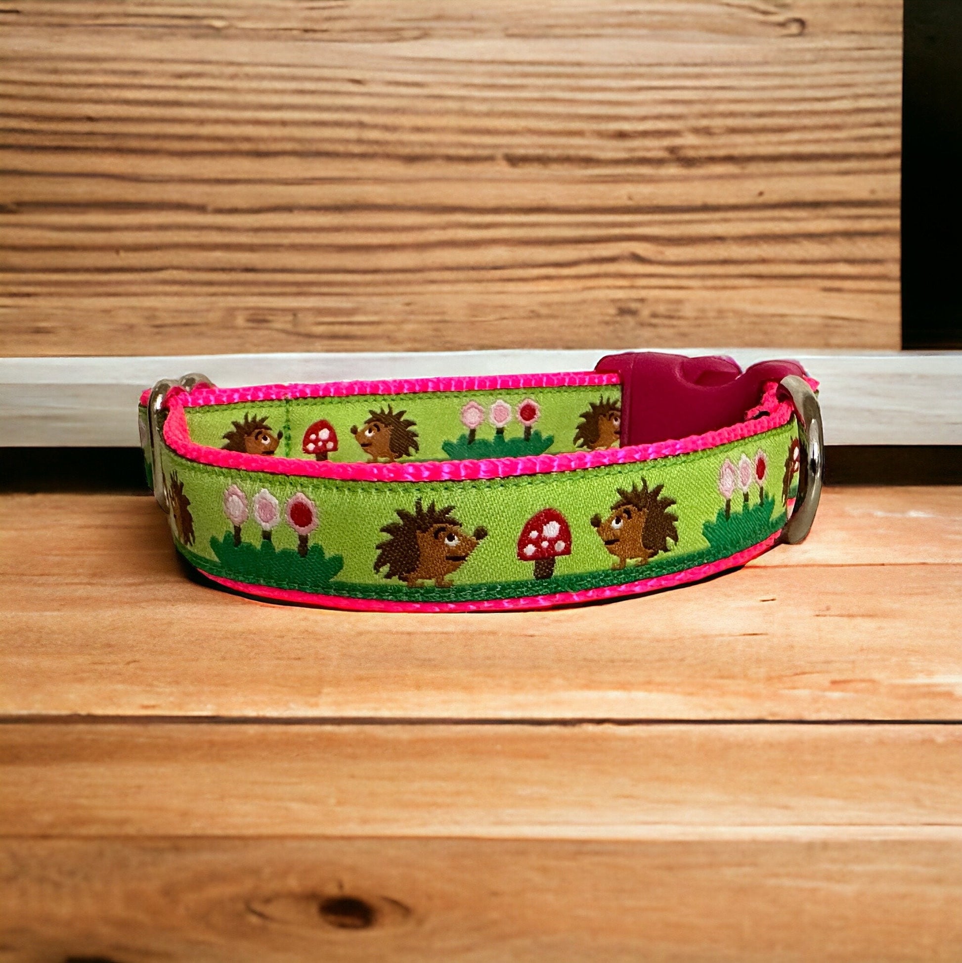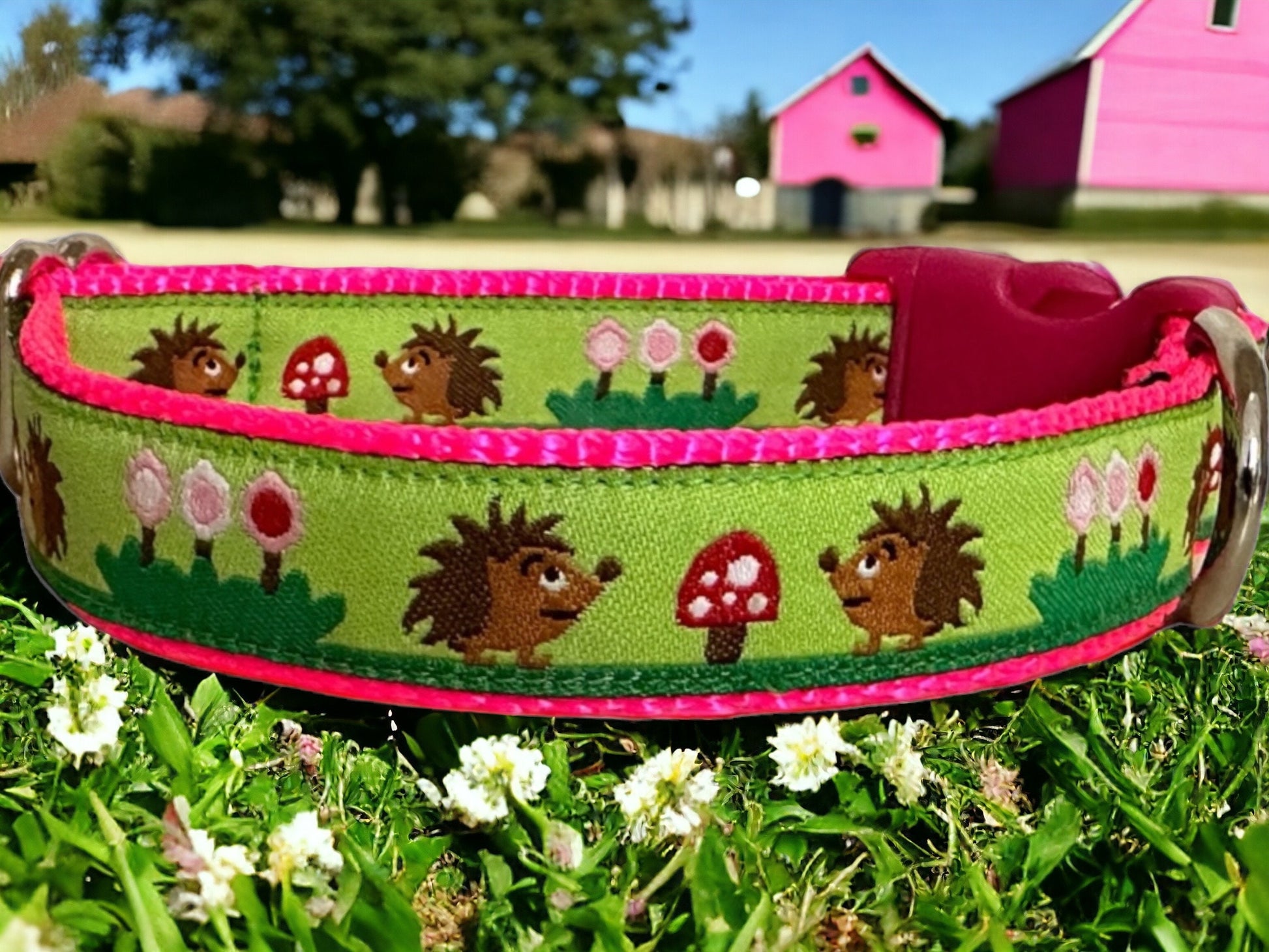 # Happy Hedgehog Dog Collar Watch your pup's personality shine with this adorable hedgehog-themed collar. Featuring a cheerful design that brings a smile to every walk, it's the perfect way to let your furry friend's quirky side show. Durable construction keeps up with playtime adventures, while the adjustable fit grows with your dog. A delightful choice for pet parents who love a little whimsy mixed with everyday wear.