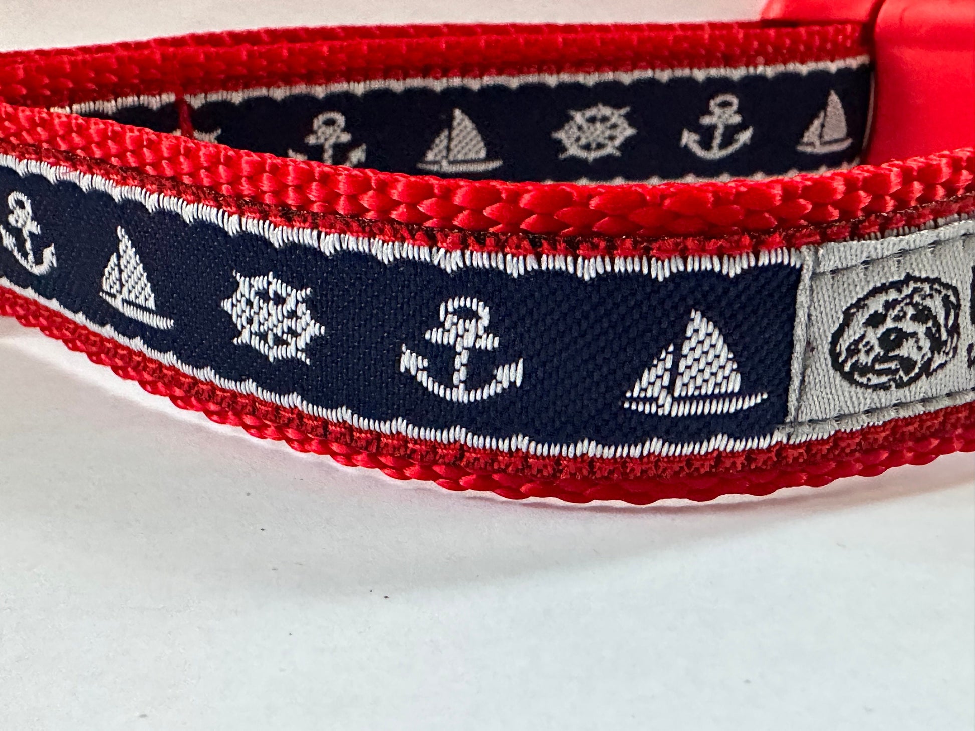 Navigate the waters in style with this navy blue dog collar featuring a vibrant red trim and classic sailing motif. Perfect for the adventurous pup, this collar combines nautical charm with premium craftsmanship. Customize with embroidery or an engraved buckle to make it uniquely yours. Built for comfort and durability, it's the ideal choice for dogs who love the great outdoors—or just look like they do.
