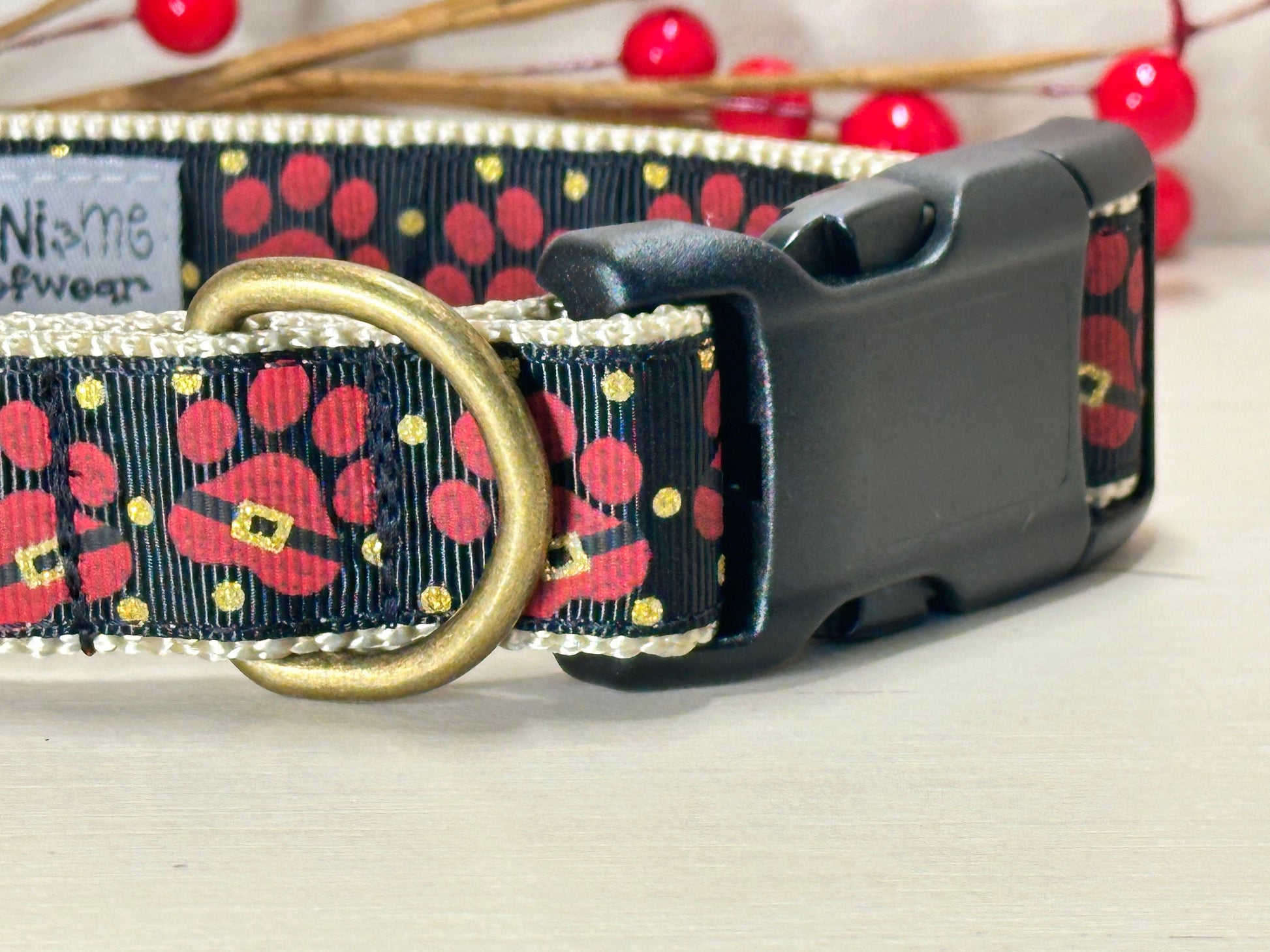 Santa Paws Dog Collar: Christmas Paw Print, Holiday Pet Collar